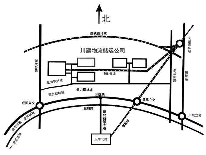 川建物流公司地理位置得天獨厚,地處成都市外北洞子口生資、建材、機電市場黃金地段,三環(huán)路成彭立交橋外200米,西緊靠新成彭公路;東臨國家鐵路寶成線、南通過成都市蓉北商貿(mào)大道僅4公里到達成都火車北站;北有成都鐵路西環(huán)線、成都繞城公路環(huán)繞其外;公司擁有5.8公里306鐵路專線與寶成鐵路在天回鎮(zhèn)接軌,自有GK1C、東方紅5型內(nèi)燃機車各一臺,并有編組站線。四通八達方便快捷,是貨物儲存中轉(zhuǎn)的理想場地。川建物流儲運公司機械化操作程度高,各類裝卸設(shè)備齊全,有8噸、16噸、50噸汽車吊各一臺;有C7022、C5530、H3/36B等塔式起重機5臺;10噸、20噸行車3臺;3噸叉車2臺。本公司還有專業(yè)運輸車隊,各型載重汽車數(shù)十輛,并具有維修各種工程機械、汽柴油機動車輛的能力和資格。