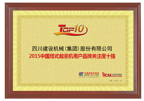 近日,中國路面機械網及工程機械電商網發布“2015中國工程機械用戶品牌關注度排行榜”,四川建設機械(集團)股份有限公司進入“2015中國塔式起重機用戶品牌關注度排行榜”前十強。