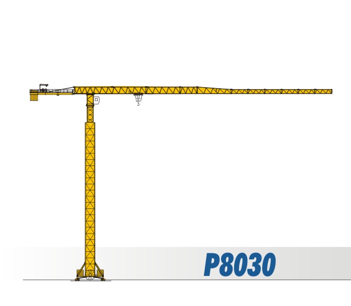 臂長組合:80m 75m 70m 65m 60m 55m 50m 端部吊重:1.7t(80m)/3.0t(80m) 最大吊重:25t(13.9m)